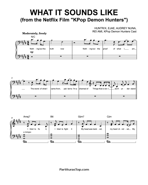 Partitura What It Sounds Like KPop Demon Hunters – Partitura Piano Pdf. Compás 4/4, Tonalidad : E/C#m, Tempo de ♩ = 106